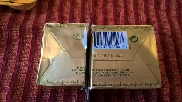 Cortar 6 cucharadas de mantequilla orgánica de la pieza original.