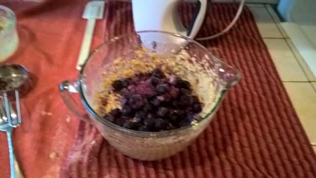 Añadir 1 y 1/2 taza de arándanos congelados con 1/2 taza 3 veces.