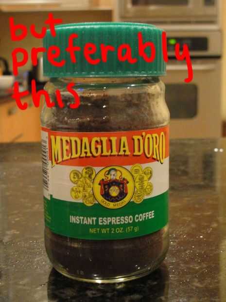 ** Se puede utilizar café molido o café instantáneo. Si no tienes café instantáneo, usar café molido regular. Café instantáneo es mejor usar porque tiene un sabor más distinto de café y café regular molido no se mezcla a la masa, así como hace el café.