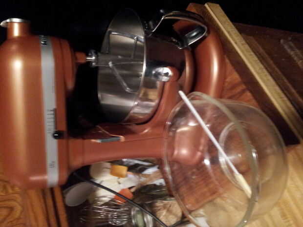 Interruptor accesorio de paleta, luego agregue lentamente la harina. Se agregar unas cucharadas a la vez y esperar hasta que se mezcla completamente, luego añadir más hasta que la totalidad de los ingredientes secos y los ingredientes base se mezclaron.