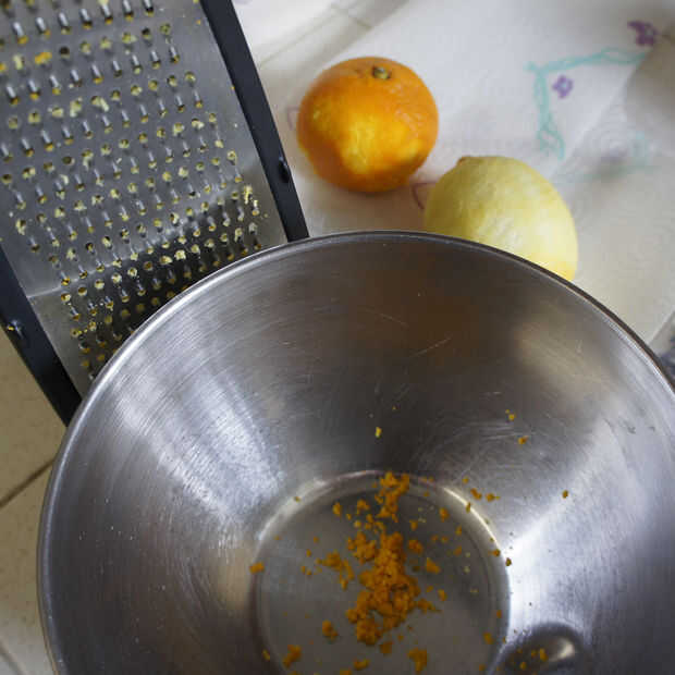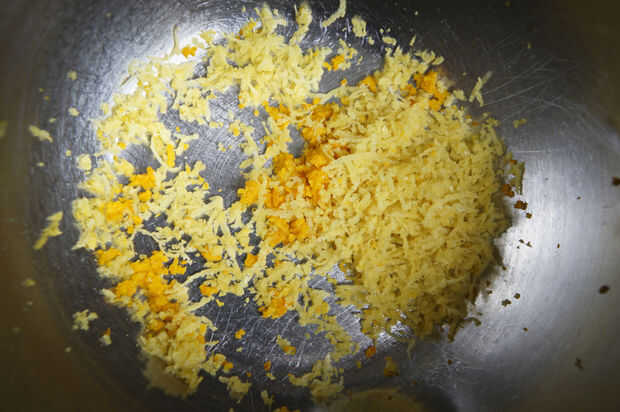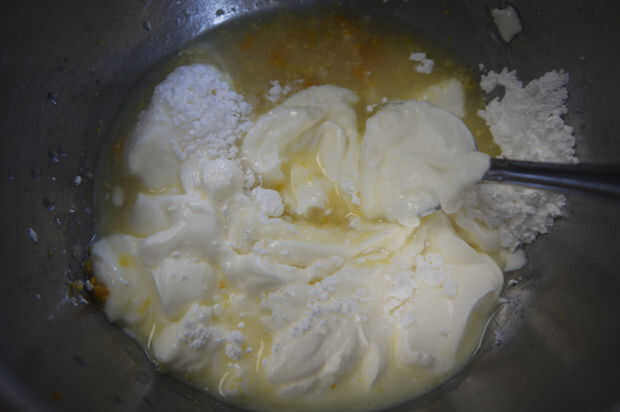 Ralladura de la Clementina y limón y coloque en un tazón pequeño. A un lado de la Clementina ralladura para adornar. Exprimir el jugo de 1/2 de limón en el recipiente. Añadir el azúcar en polvo y crema agrio.