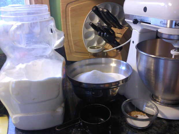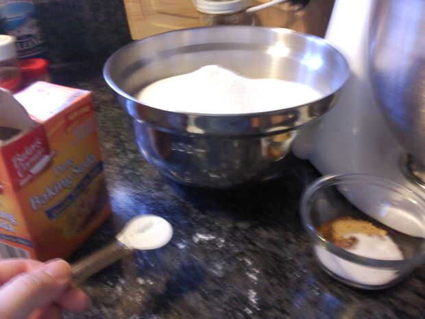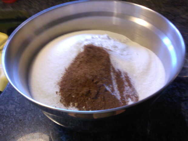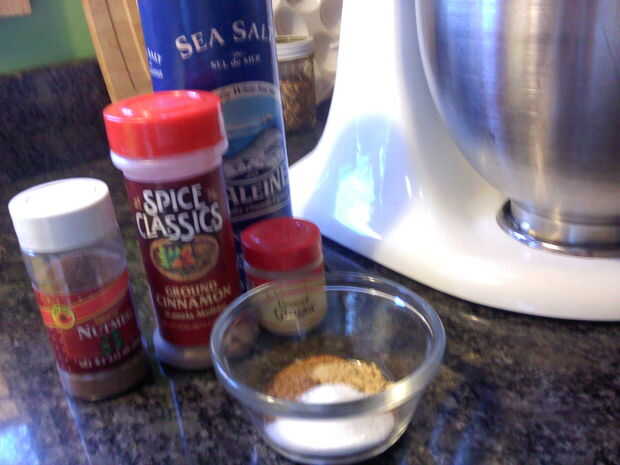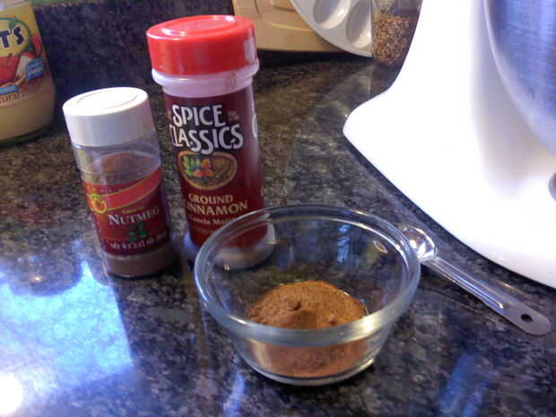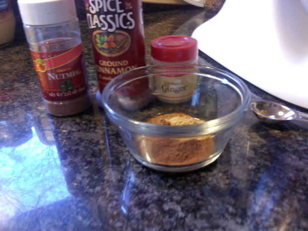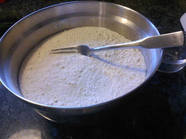 Vierta la taza de la especia con la mezcla de harina y dar una agitación rápida con un tenedor para mezclar.