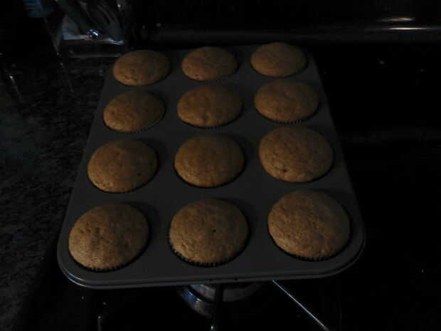 Las magdalenas de prueba insertando un palillo en el centro, si sale limpio las magdalenas están listas, si hay masa en el palillo de dientes, puso nuevamente en unos minutos más.