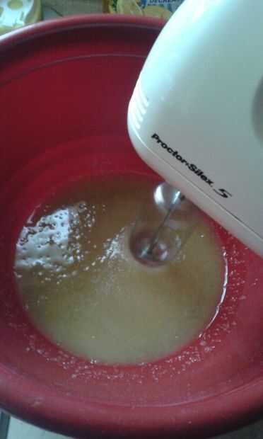 2. luego tome el huevo grande (foto 4) y mezcla hasta incorporar bien. (Foto 5)