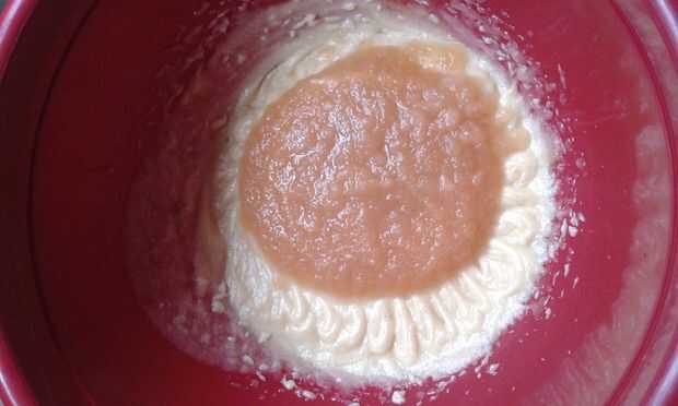 3. Tome el puré de manzana canela y añadir a la mezcla (foto 6) y mezclar bien. (lo siento no tengo una foto de él mezclada con el puré de manzana)