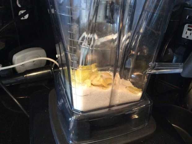 Coloque ralladura y el azúcar en la licuadora y mezcla hasta que cáscara finamente mezclados con azúcar.