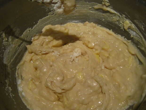 Así que mezclé los ingredientes secos (harina y polvo de hornear) en un tazón, luego los ingredientes húmedos (miel, cerveza, huevos y mantequilla) en otro, entonces añade los ingredientes húmedos a los secos.
