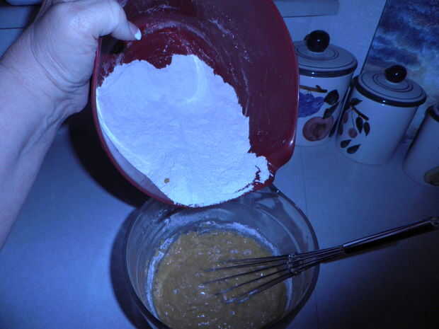 Luego agrego el seco al líquido, por lo que tengo alguna mancha seca, y me encuentro que me sale mejor distribución de los líquidos a los sólidos.