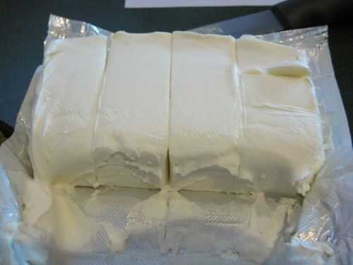 -Dejar el queso crema expuesto, o utilice una cuchara para sacar alguna masa sobre él.