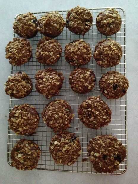Hornear por 35 minutos o hasta que las tapas son firmes y ligeramente marrón, y un palillo insertado en el centro, éste salga limpio. Deja enfriar por 15 minutos antes de sacar los muffins de latas.