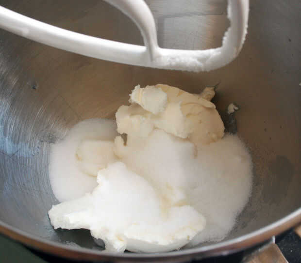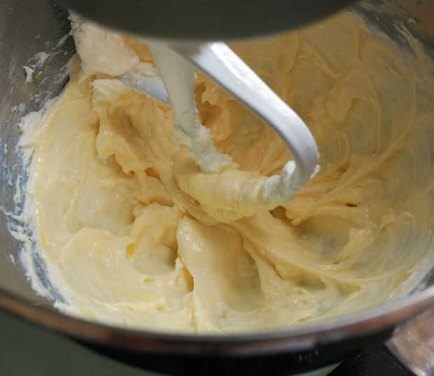 Mezclar queso crema, azúcar, yema de huevo y vainilla hasta combinar bien.