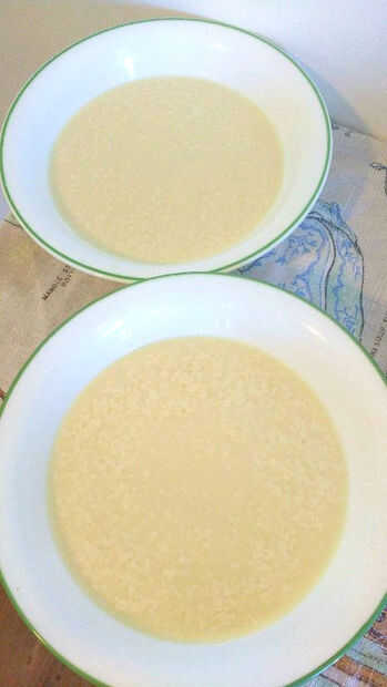 6. Agregue la mezcla de leche y vinagre de soja cuajada. (Esta mezcla debe parecerse cuadro uno cuando está listo.)