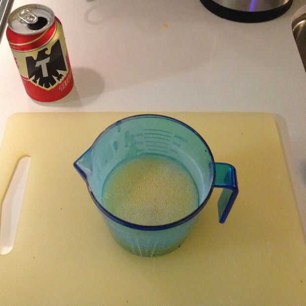 Añadir agua a los huevos para hacer dos tazas. Dos huevos es generalmente una taza, por lo que también podría añadir uno a uno 1/2 tazas de agua a la mezcla. ¿Eso hace sentido?