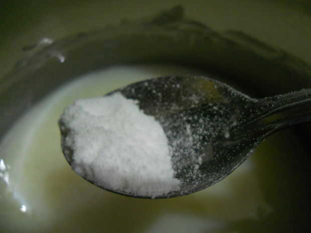 Agregar bicarbonato de sodio y polvo de hornear a la mezcla