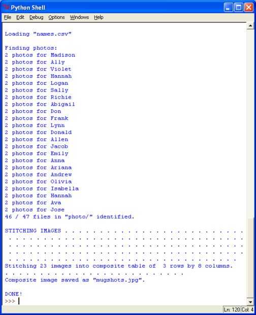 El script generará una cierta información sobre lo que está haciendo. Si todo va bien, debería ver la fotos y unirlas. Si el script tiene problemas para encontrar algo que necesita, debe saber. Si obtienes un error de secuencia de comandos, tienes que descifrarlo, o pedir ayuda. No es infalible, y no soy tan bueno un programador. Obtienes lo que pagas.