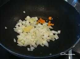 Agregar 200 g de rodajas de cebolla, manzana 250 g y 100 gm picado jengibre y cocine por unos minutos.