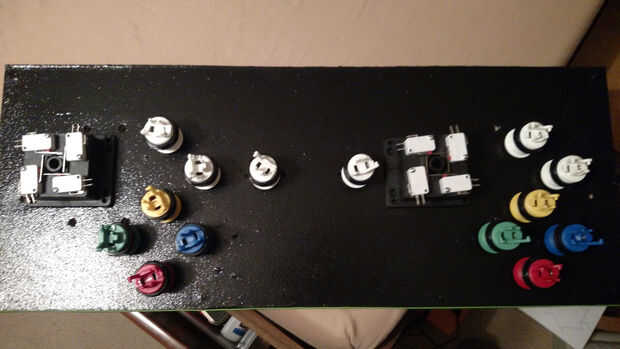Es hora de crear su panel de control. Retire el panel de su gabinete si es posible y haz un plano de donde desea que los botones. Asegúrese de dejar suficiente espacio entre los botones que te sientas cómodo de perforación. Fusionaron un diseño clásico de Street Fighter con el de la SNES, cómodo para la mayoría de los juegos. Marcar en el tablero donde necesitará perforar o como yo y crear un gráfico en el ordenador te y luego imprimirlo. Esto puede usarse también para hacer que una etiqueta de control fácilmente. Sólo Abra su calcomanía en su software gráfico e ir a la ciudad! Asegúrese de recordar que a menos que te lo dan impreso profesionalmente por una empresa como GameOnGrafix, puede disminuir su calidad. Mi gráfico fue impresa en 3 hojas de papel de folleto y ve bien.