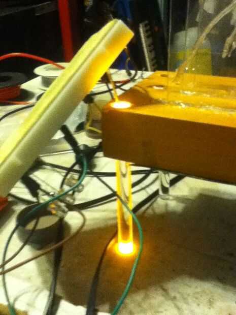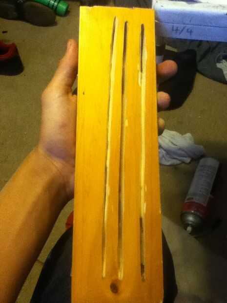 El contrario el título cada signo tiene una base... Otro derp. Tenía algo de madera de algunos ex muebles usé acabo hecho sin una base y en su lugar hizo agujeros círculo medio en la parte inferior de la señal de los LEDs y utiliza acrílico extra para las piernas de que mi muestra de zelda demuestra esto pero no difuso de todos que bien por lo que no lo recomiendo. La manera esta base estaba cortando un trozo de madera al tamaño deseado y que las ranuras para el acrílico con una herramienta esmeriladora, soy muy consciente de la falta de derecho-ness y oops:) ahora tienes que elegir que capa va en que ranura, de atrás hacia delante decidí ir de amarillo, blanco, azul. Después de seleccionar los lugares donde estará sus LEDs de taladro. Recuerde que ser eficientes, por ejemplo en la jaula que utiliza sólo dos LEDs porque eso es todo lo que necesitaba también para las piernas he usado 1/4 pulgada las barras de acrílico, no terminan de hacerlo pero planeaba poner un intermitente rgb LED encima de cada pata para los puntos de mayor genialidad.