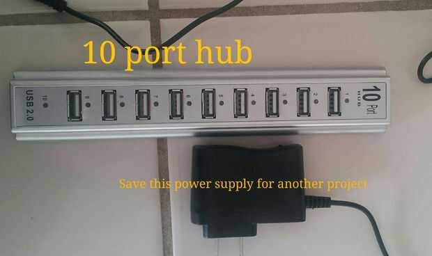 Hub USB para modificar. Guardar la alimentación wimpy para otro proyecto.