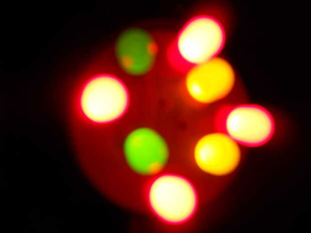 que quería experimentar con el uso de diferentes colores de LEDs, que no sea el estándar RGB, para crear efectos multicolores en una lámpara funcional.Esta lámpara utiliza cian, Magenta, amarillo, morado, Aqua-verde y azul 5mm LED junto con el superi