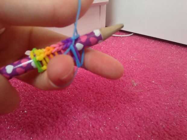 aprender a hacer un agarre de lápiz del arco iris del telar.Paso 1: materiales -Bandas de diferentes colores. Estoy usando sólo dos.-Telar arco iris-Hook(Metal or Plastic)-Charm(optional)Paso 2: Colocación de las bandas. 1.) hacer una figura 8 (signo