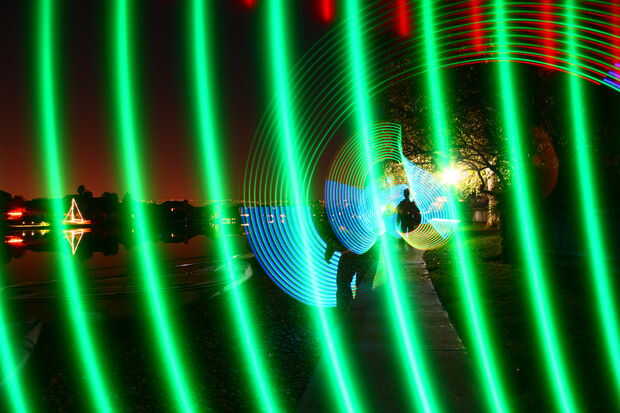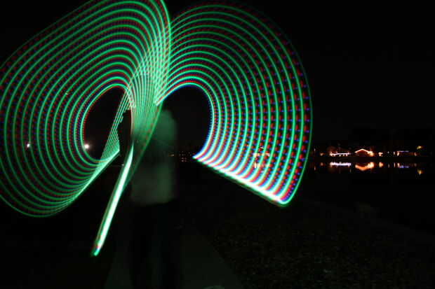 Lotes de experimentación le dará diferentes resultados. Ejecutar a través de la imagen con la espada de luces moviéndose. Donde nunca las luces se pueden ver por la cámara abierta, la imagen tendrá rayas colores.