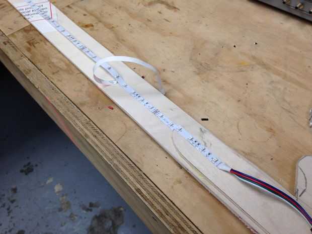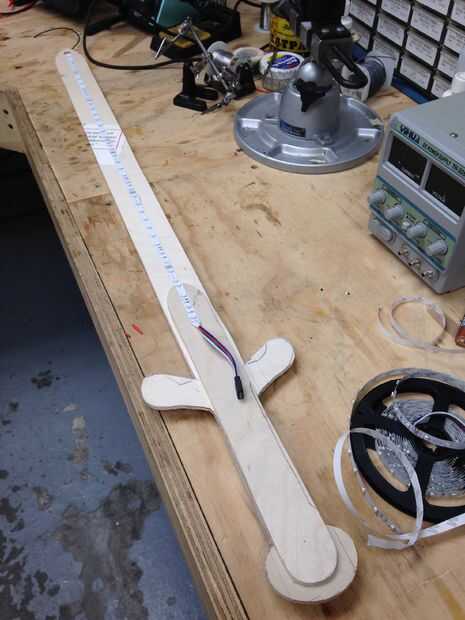 Perforé una ranura en la punta de la espada por la cinta de LED caber a través. Sé que esto se reproducirá con áspero y la ranura le ayudará a proteger los LEDs contra daño cuando la espada es apuñalada en algo sólido.