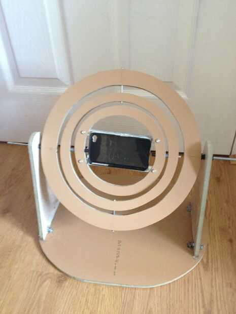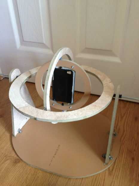 algunos de ustedes pueden haber visto mi prototipo de este soporte de teléfono multi eje que le mostrará cómo hacer esto pero de bandejas de poliestireno de la pizza que después mi teléfono ya sea por una noche, un anillo había encajado un los otros 2 habían deforme así que hice este uno nuevo fuera de un pedazo del viejo tablero de piso que tuve después de nuestro piso del Conservatorio con azulejos. Originalmente iba a obtener tecnología mi profesor de diseño al corte en el cortador del laser pero no estaba funcionando como debería. Este nuevo diseño es mucho más fuerte y he encontrado que puede contener más que mi iPhone 4S que no es el más ligero de los teléfonos.