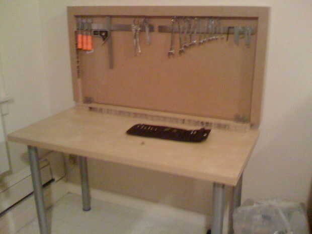 Siempre tenía un montón de tarjetas esparcidas en mi escritorio y no sabía dónde ponerlos en un lugar visible y organizado. Pensé que sería buena idea hacer un organizador o una tabla para pegar, quería algo simple y "masculino", pero mi novia q