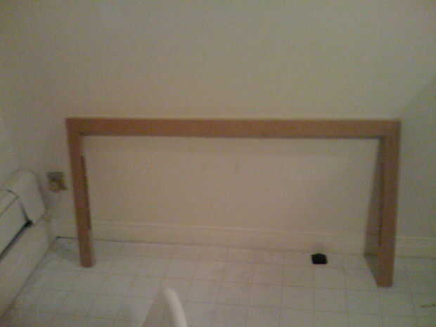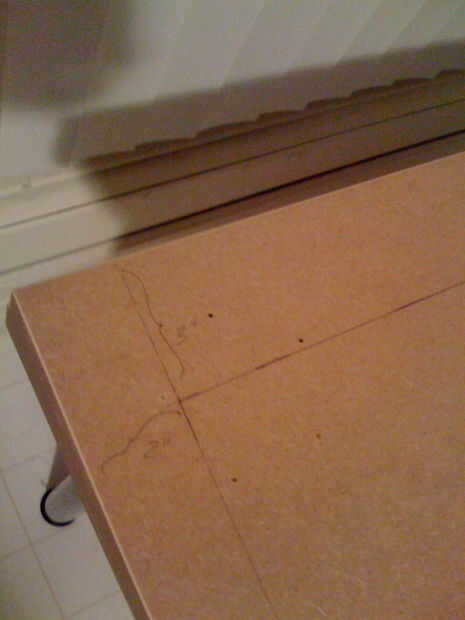 Marcar 2 o 3 pulgadas desde el borde de la mesa y por consiguiente la marca (lápiz y regla). La anchura se puede ajustar algunos, pero mucho más le impedirá guardar cosas en la parte superior y mucho menos negativamente afectará cómo robusto es el escritorio.