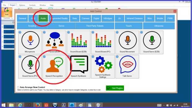 4.) Seleccione la categoría de "Audio" ficha y haga clic en el icono de "Reconocimiento de voz" para agregar este control al proyecto constructor de EZ.