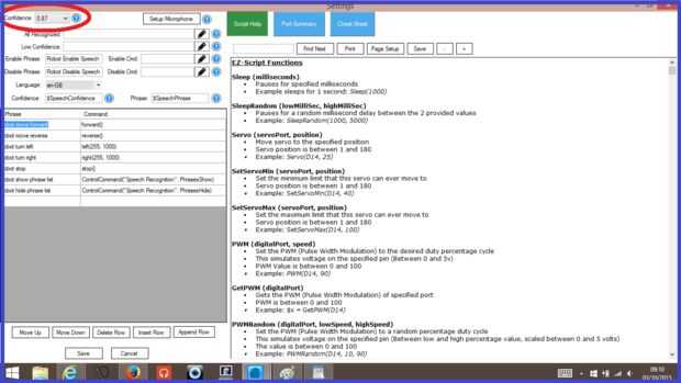 Al hacer clic en el icono de engranaje pequeño, Esto abrirá el editor de control del reconocimiento de discurso. Esto es donde agregas las frases que dices del robot y las acciones que el robot se llevará cuando se escuchan estos comandos.