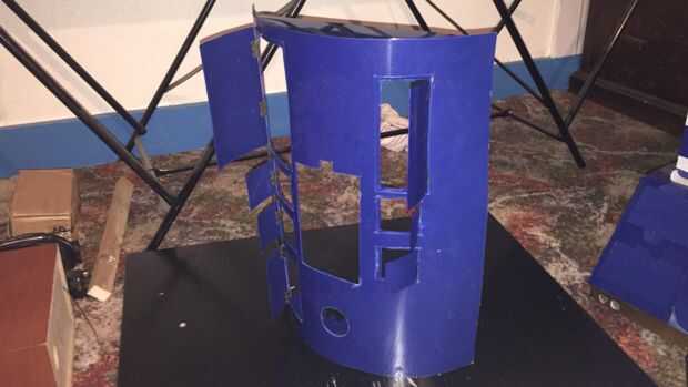 Luego, pasé a las pieles frente. I cortar dos semi círculo usando las caderas, había ajustado hacia abajo y forman las aletas que se calientan con un encendedor y doblado 90 grados. Éstos fueron cabidos a la parte superior e inferior de la piel frontal para ayudar a mantener la forma y para el refuerzo adicional.
