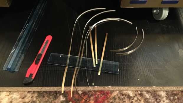 Con una segunda hoja de caderas, otra piel delantera ligeramente más ancha era corte y calor formado. Cuando haya enfriado, la piel interna fue colocada dentro del panel de piel externa y la cut outs marcados. Ahora, cuando corte los paneles de piel externa, estos deberá cortar un poco más grande (aproximadamente 1/2 pulgada) y recorte las piezas guardado y poner a un lado. Son las aletas de la herramienta de utilidad.