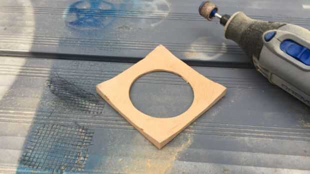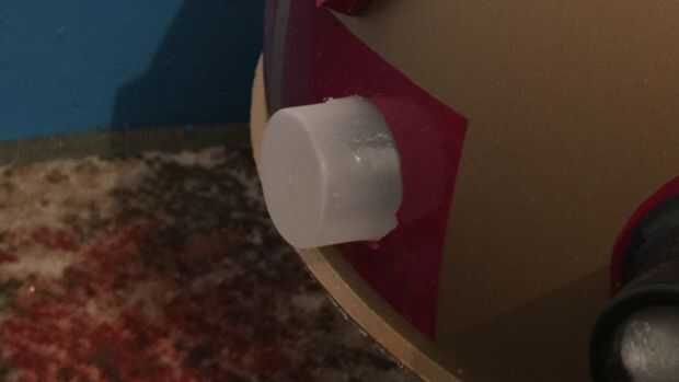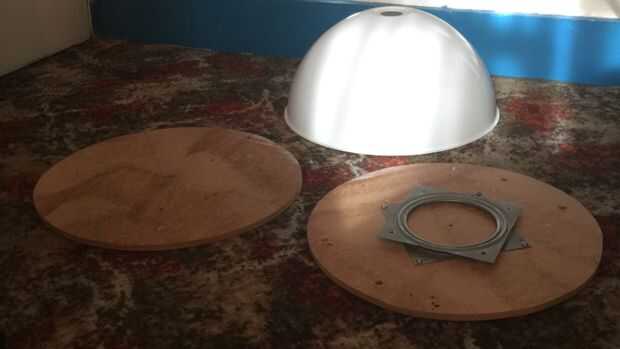 Esto fue hecha usando la izquierda dos sobre MDF del disco que fueron cortados en el inicio de la construcción. Para empezar, medido y marcado el centro del disco dos (estos tienen que ser centro exacto, del servo no se convertirá la cúpula correctamente). Del disco más grande, había dotado de un cuerno del servo el servo a montaje inserción hacia arriba y encuentra en punto muerto.