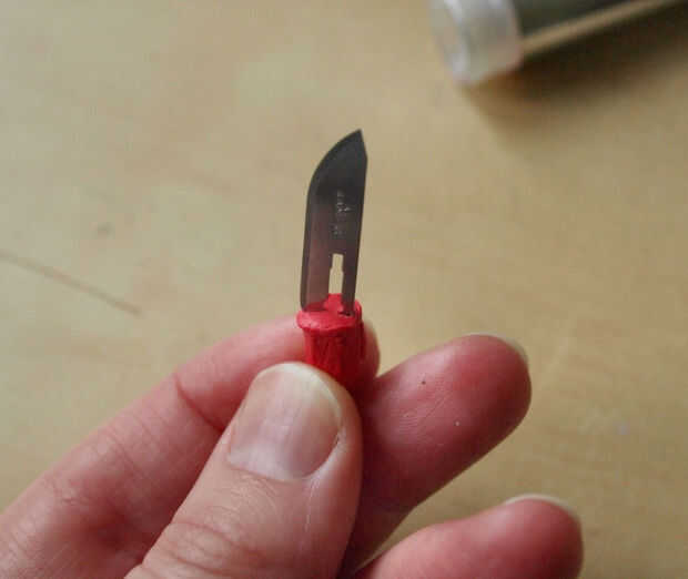 • Una vez que había curado la Sugru empujé al final de la hoja en el portahoja Sugru (puede hacer la vaina primero - ver paso 5) y colocarla dentro del portapuntas (debe hacer un ajuste exacto).