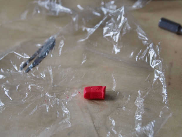 • Entonces saqué el Sugru hacia fuera (tirando el envoltorio plástico)