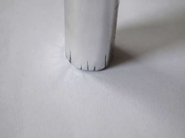 oincrementos si quieres. Luego colocar el tubo en el papel y marca con un lápiz cada uno de los incrementos. A continuación había grabado esas marcas con una cuchilla afilada. Para hacer las marcas destacan llené en las marcas con un rotulador negro.