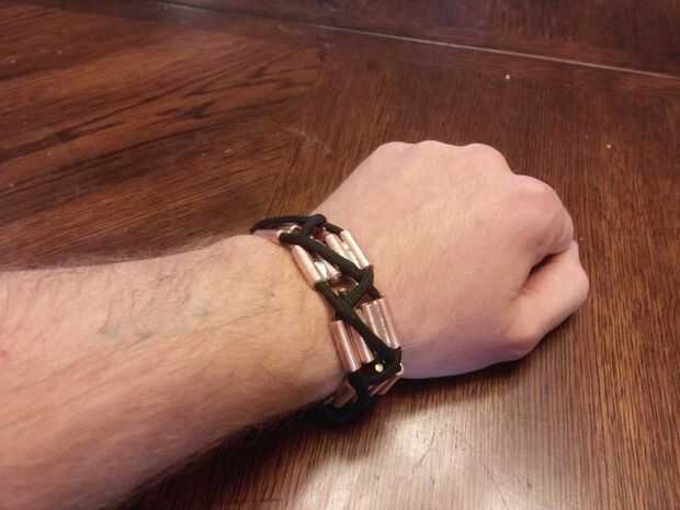Ya que no tiene una impresora 3D fácilmente a mi disposición, traté de averiguar una manera de hacer un artículo similar con herramientas y materiales que tenía a mano. Después de venir con un prototipo utilizando tubería de cobre de 1/4" ayer por la noche, comencé a pensar realmente podría ser posible. Esta mañana, tarde, me arranca hacia fuera y han quedado bastante contento con los resultados. Quería hacerlo en el tiempo para entrar en el concurso de preparación de Apocalipsis como el desafío de la pulsera, así que considere votar por mí en las personas (el plazo para presentar es esta noche, pero usted puede votar por unos días más)!