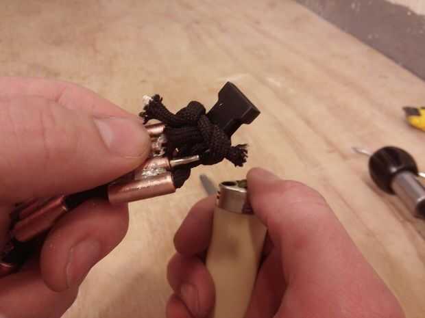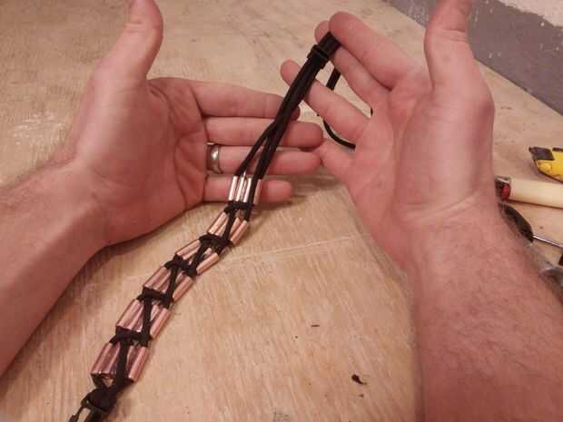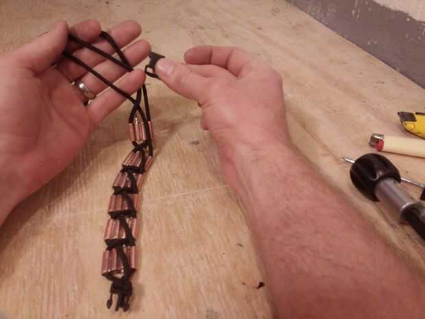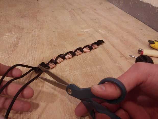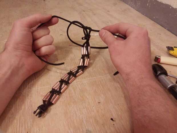 Después de que usted ha tejido en todos tus enlaces, acabaremos con una trenza más antes que en la otra parte del clip. Todos los 3 filamentos a través del clip del hilo de rosca. Aquí, puede ser un poco creativo en cómo quiere acabar la pulsera. Ató junto con la intención de dejar los extremos sin fundido juntos por lo que potencialmente podría deshacerlo y cambiar las cosas en el futuro. Además, el nudo que haces debe asegurarse que la última trenza no deshacer sí mismo. En última instancia, este último paso debe servir el propósito de asegurar el extremo del cable y quitar el exceso, pero aún ser estéticamente agradable a usted.
