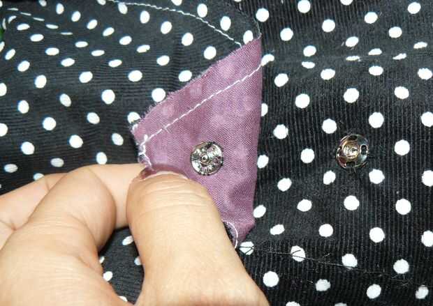 También he añadido una cosa el botón snap pero eso es opcional. Ayuda para hacer la bolsa portable porque se puede cerrar. También es útil si usted está pensando en colgar la bolsa en algún lugar debido a los agujeros en la parte base del botón. Ver fotos.