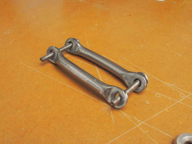 Te recomiendo acero inoxidable, ya que es muy fuerte y a prueba de corrosión. Es probable que necesite las arandelas del mismo tamaño. Espaciadores de plástico (nylon, PTFE, etc.) puede utilizarse para separar las llaves y evitar roces, pero no encuentro necesario.