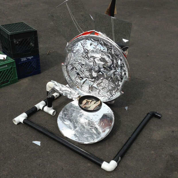Ahora creo que el "compuestos" platos parabólicos tienen numerosas ventajas. (Una cocina solar parabólica compuesta puede hacerse también con el matemático y puedo añadir instrucciones más adelante).Uso hardiplank, cartón, yeso, concreto o mazor