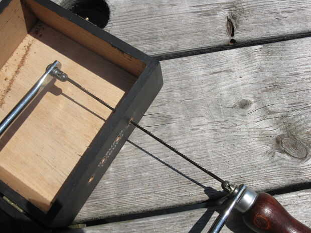 5. Taladre agujeros donde los puertos ir de manera que usted puede poner la hoja de sierra por el lado de la caja