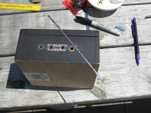 6. Ahora use la sierra para cortar los agujeros en la caja (si tienes una herramienta Drimel esto sería perfecto para esto)