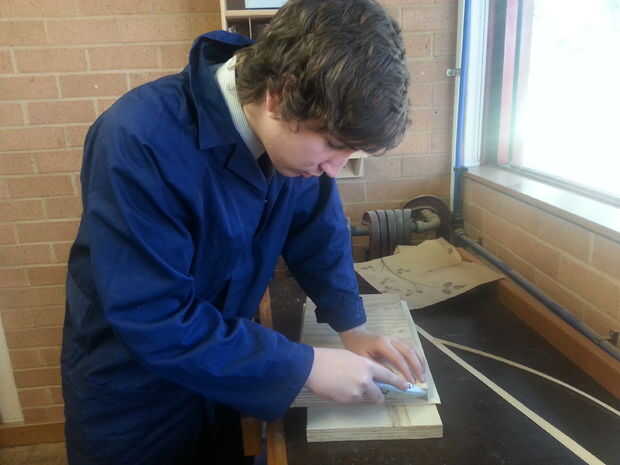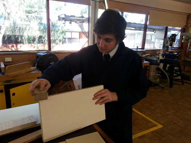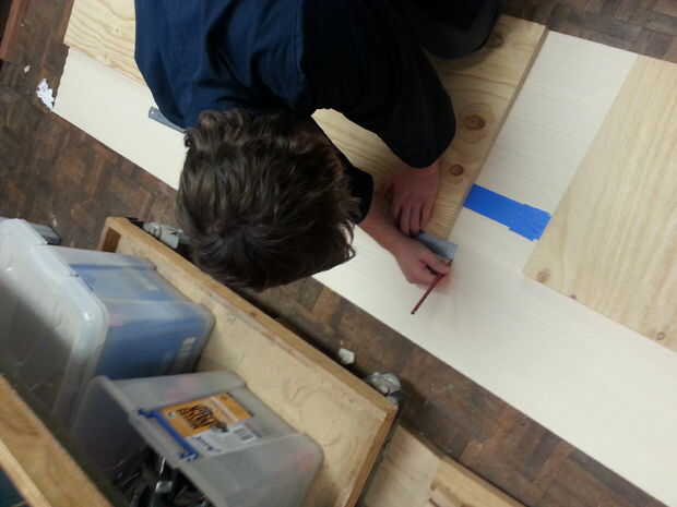4. luego había transportado mi madera a la escuela y le dio un ligero lijado. Usando una lija 120 enarenó ligeramente la madera contrachapada.