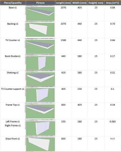 1. por correo electrónico mi lista corte al proveedor y utilizando una tabla de sierra que cortaron a la medida exacta. Me seco había equipado de la unidad.