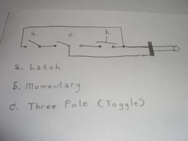 Hay dos interruptores de pie básico utilizados con dispositivos musicales. Traba (traba) los interruptores e interruptores momentáneos. Enganche se "cierre" abierto y cerrado y se utiliza amplificadores de guitarra para activar la distorsión u otros efectos. Interruptores momentáneos son siempre en o siempre apagado, cuando la señal es interrumpida (siempre encendido) o habilitado (siempre apagado). Se utilizan interruptores momentáneos para pedales de sustain (teclados/sintetizadores) y dispositivos de disparo como máquinas de tambor, equipo de grabación. He querido a incorporado ambos tipos de interruptor en un solo pedal para reducir el número de cables en mi espacio de mermelada, usando el interruptor de palanca en el lado puedo usar el interruptor de cierre o el interruptor momentáneo dependiendo de lo que se requiere. Venta por menor pie momentáneo interruptores costo alrededor de $16, cierre inicio de interruptores de pie cerca de $20. El costo para hacer este pedal fue de cerca de $5.