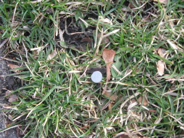ahora es mejor hacer esto fuera así no se pueden plantar las uñas o estacas fácilmente. medir la longitud de la cuerda y poner las uñas un poco más corto forma lejos mutuamente que esa longitud.