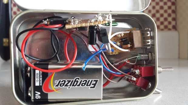 Para construirlo, toma su clip de batería de 9V y el rojo de la soldadura (+, ánodo, etc.) cable al conmutador. Cuando termine, tome un alambre y soldar a un tablero de perf. Asegúrese de que se ha medido para ser un buen ajuste para el recinto. Ahora toma el negro (-, cátodo, etc.) a la Junta de perf. Ahora, usted tiene control del circuito general. Ahora, toma su resistor del LED (lo 330-350 ohm) y la soldadura que el alambre. Ese resistor mantendrá el LED de funcionamiento más largo. La pata más larga del LED al otro extremo de la resistencia de la soldadura. La soldadura de la pata corta del LED a la - entrada. Ahora tienes un indicador que es el circuito. Prueba real rápido para ver si el interruptor está funcionando. Ahora soldar el capacitor de 22uF al circuito. Vendrá después el LED, pero no conectado a la resistencia de 330-350 ohmios. El lado con la pierna más corta y la flecha es el lado -. La pierna más larga es +. Ahora toma el 7805 y soldar después los 22uF. Si nos fijamos en el lado de los 7805 con las letras y números, la pierna de la izquierda es la pata de entrada. El centro es la tierra (que debe soldar ¡!), y la pierna derecha de la cara es la salida de 5V. Ahora, suelde el capacitor de 10nF. Que conseguí no tenía polaridad, así que pude soldar cada pierna a la tierra y la salida. Que puede ser suficiente para muchos dispositivos, pero para Apple y Samsung, han decidido que nos haría pagar $20 para un cargador de pared. Buena idea para los peces gordos, pero para latoneros, buscaremos el agujero de bucle. Y lo hicimos. Un divisor del voltaje hará hacer el truco. Pero antes de hacer eso, necesitamos utilizar el interruptor on-off-on. Esto controlará la corriente del divisor de tensión. Y con dos dispositivos, dos divisores de tensión. Así que, toma un cable que viene de la + lado del condensador de 10nF y soldar a la pata del media del interruptor. Tomar 2 más cables y soldarlos a las otras 2 patas del interruptor. Ahora, tomar otro perf y soldar los 2 fuera de los cables del interruptor y soldarlos aparte. Darles algo de espacio, los 33k resistencias van a obtener sus propios cables. Después de soldar las resistencias de 33 k, tomar las resistencias de 10k y 22 k y soldarlos al lado de uno a, con un espacio de huecos entre ellos para el - cable. Tome ese cable desde el 10nF es la - entrada y soldadura para la 10k y 22 k... No necesitan ser separados ni necesita un interruptor. El divisor de tensión está casi listo. Todo lo que necesitamos ahora es tener 2 cables (ya sé, un montón de cables) y soldar a los pines de mediados dos del USB. Puede soldar el USB a un tablero. Puede que necesite tomar una dremel y perforar algunos agujeros más grandes para los dos fuera de los titulares. He utilizado una tabla de rendimiento en el USB. Ahora, los dos últimos cables. Los últimos (otra vez) se sueldan a la 10nF. Gancho de hasta el + y - del USB. Ahora, si no queremos una V.D. de, es capaz de cargar algunos dispositivos... Ver un pinout USB en imágenes de Google si no sabes lo que es. Ahora todo lo que tienen que hacer es usar una dremel para cortar los agujeros para los interruptores, LED y USB. Si desea, poner el LED en un bisel, que será un montaje agradable para él. Eso es lo que usé.